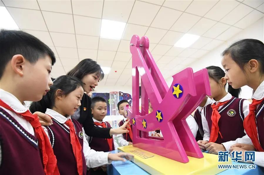 ▲资料图:贵州省贵阳市南明区花果园第三小学的老师在校园科技馆内指导学生体验“发电锚”。图/新华社发